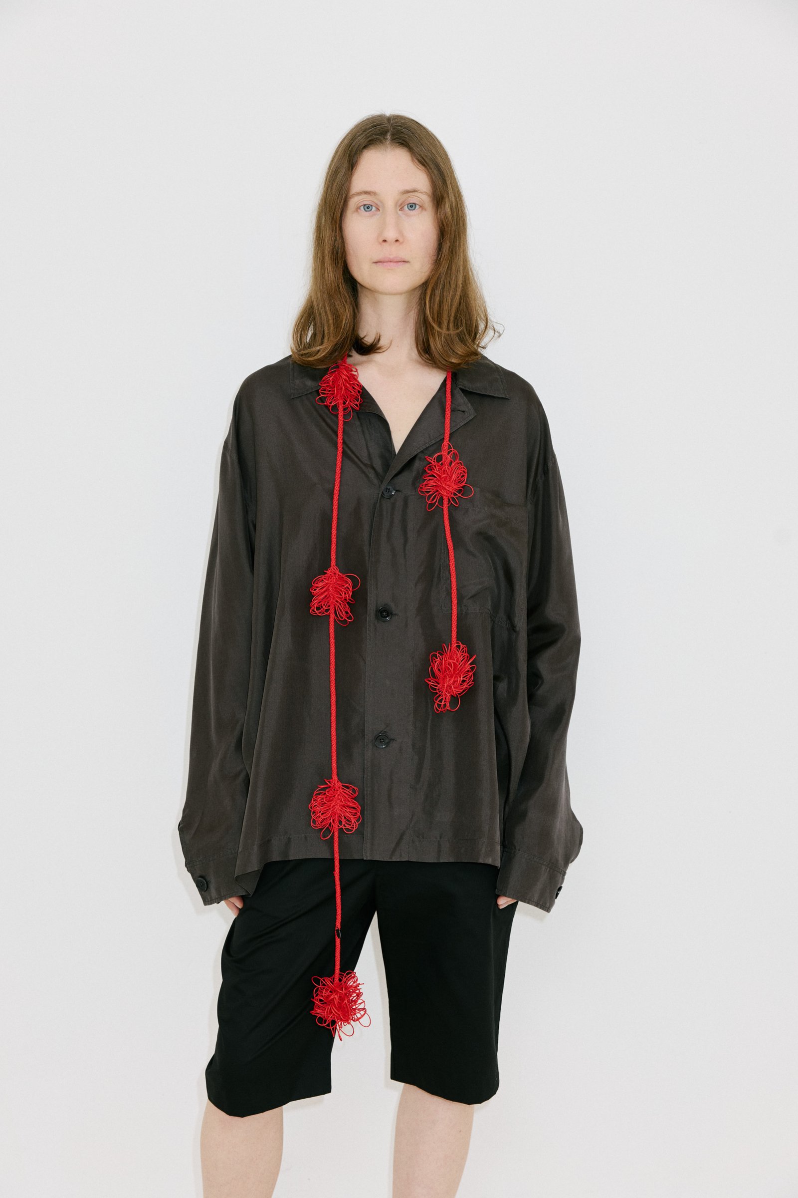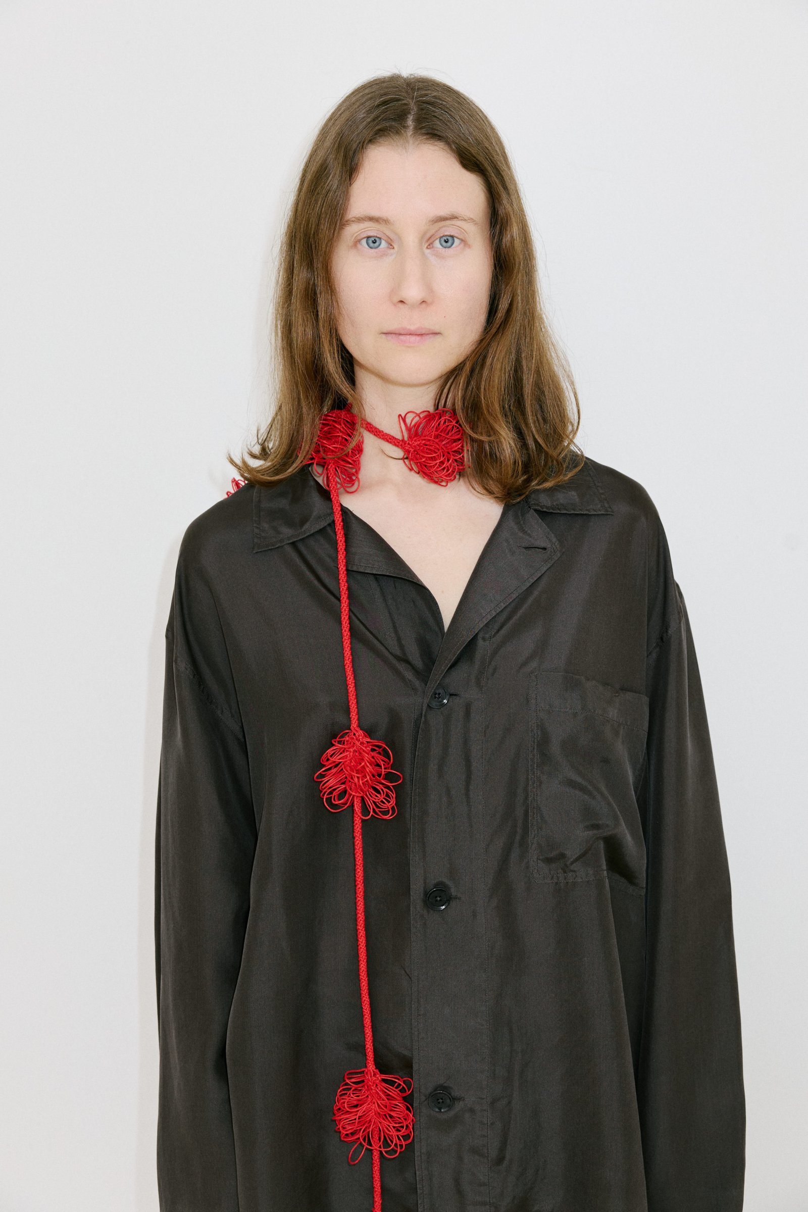 Accesorio tejido a mano con hilo de algodón encerado. Tiene una chapita metálica grabada.