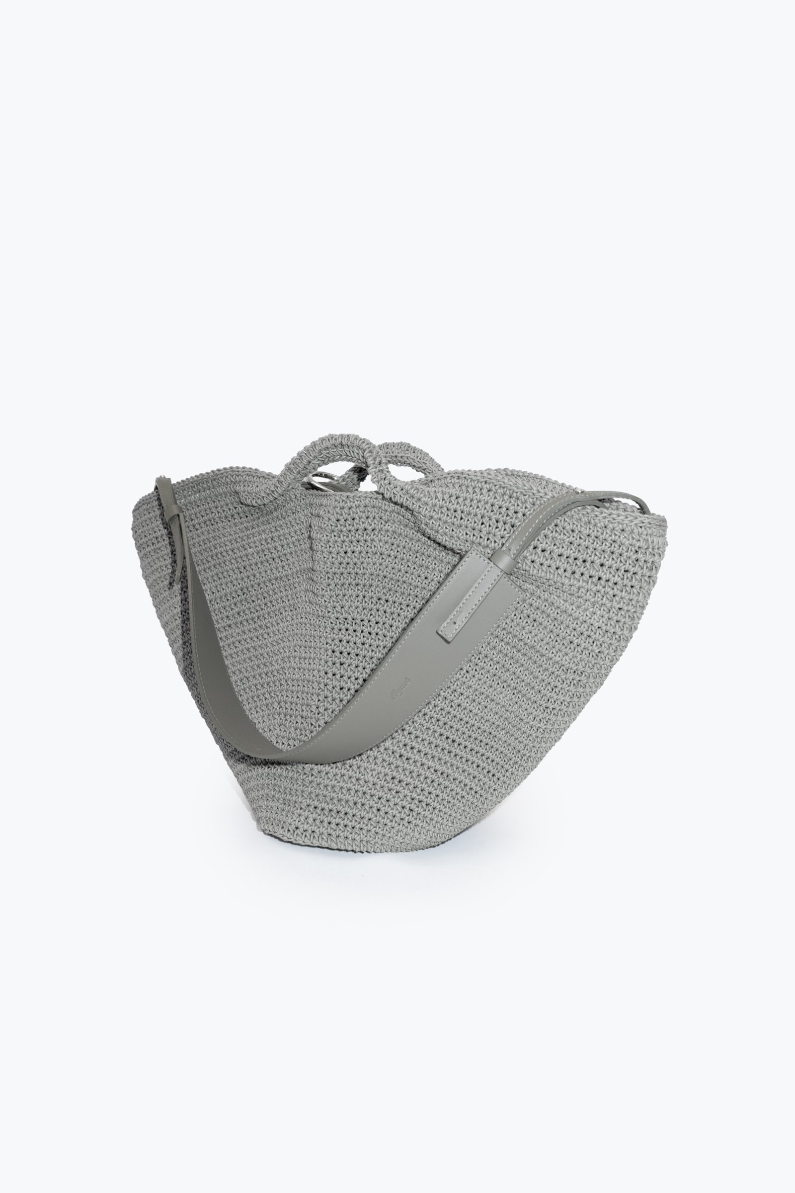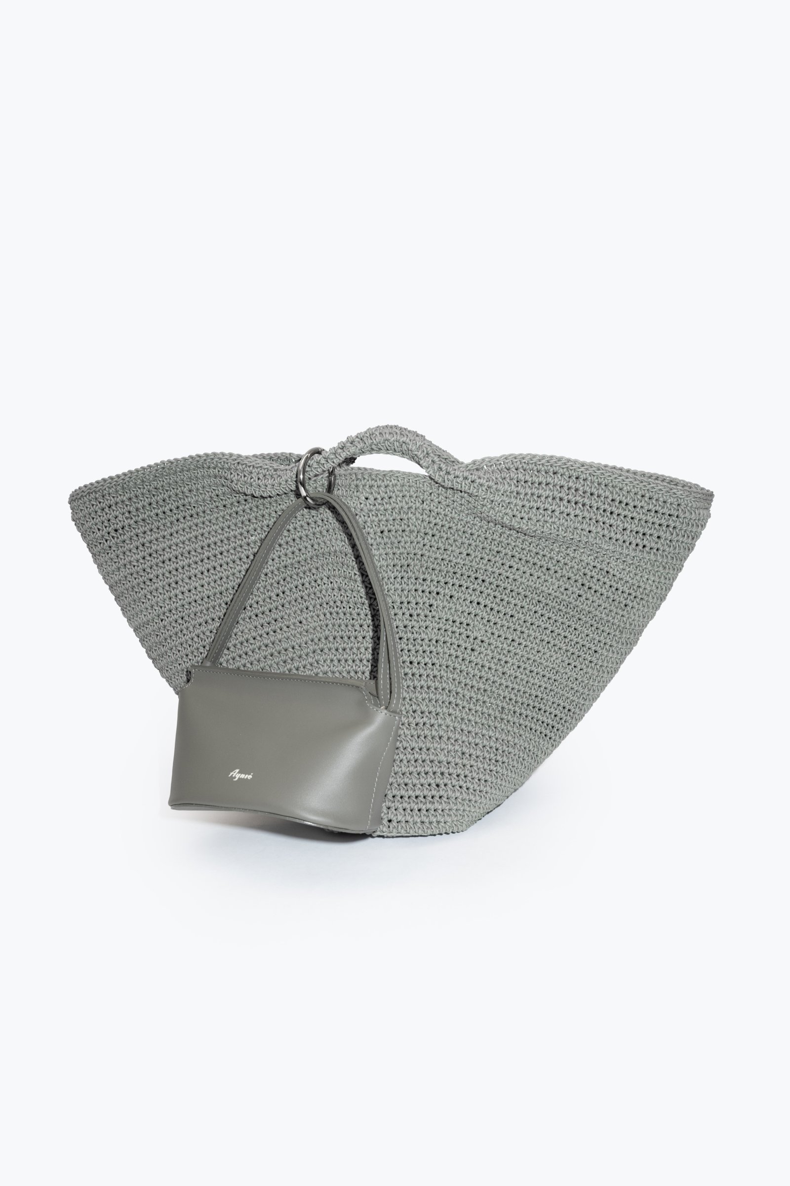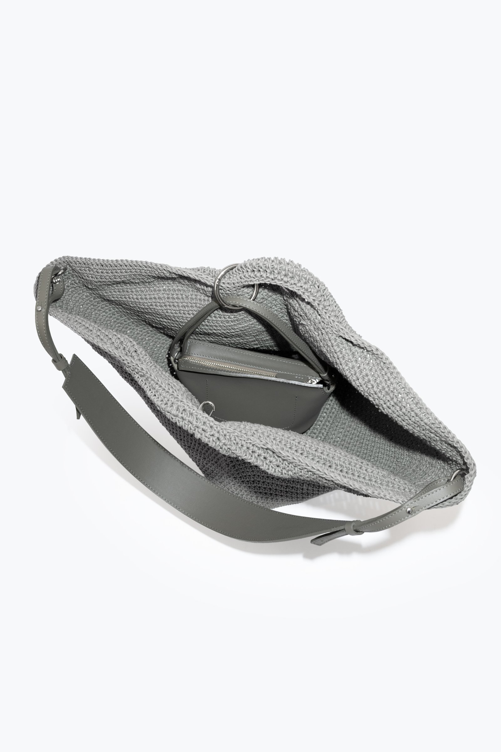 Canasta tejida a mano con hilo de algodón encerado. Tiene una correa de cuero vacuno regulable con distintas posiciones de colocación. Tiene un bolsito interno de cuero vacuno con cierre metálico que se puede usar por separado.