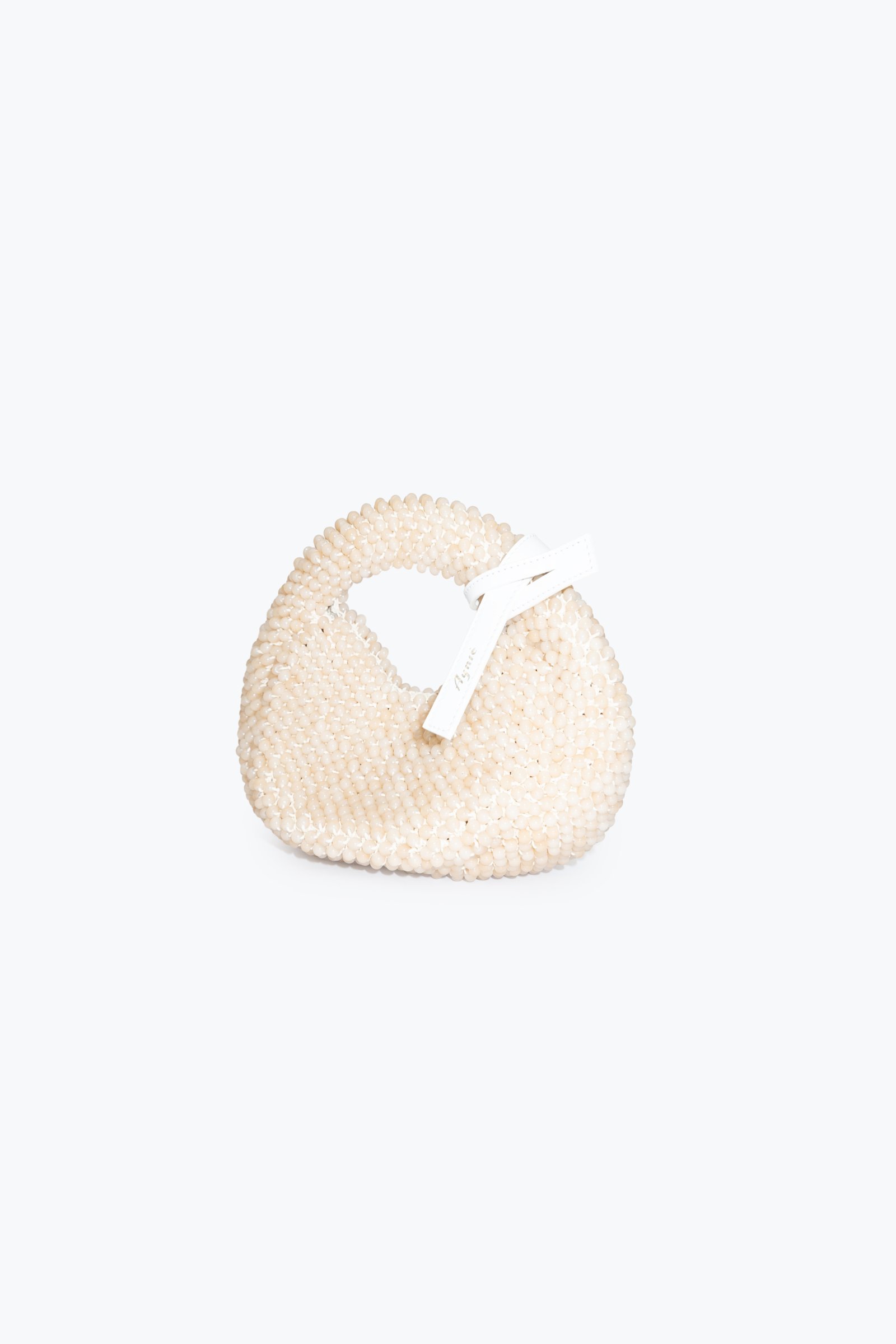 Carterita de mano tejida a mano con hilo de algodón y cuentas de vidrio. Cierra con imán y tiene detalle en cuero vacuno.