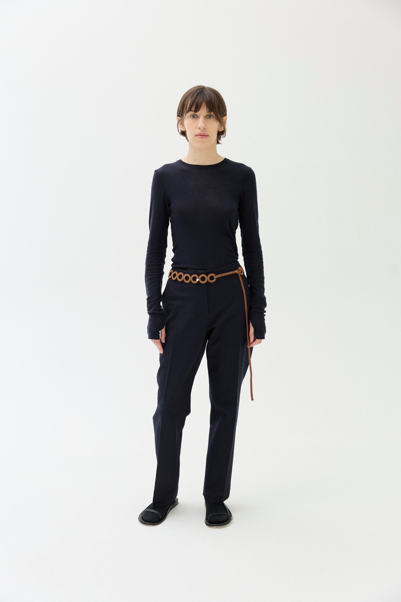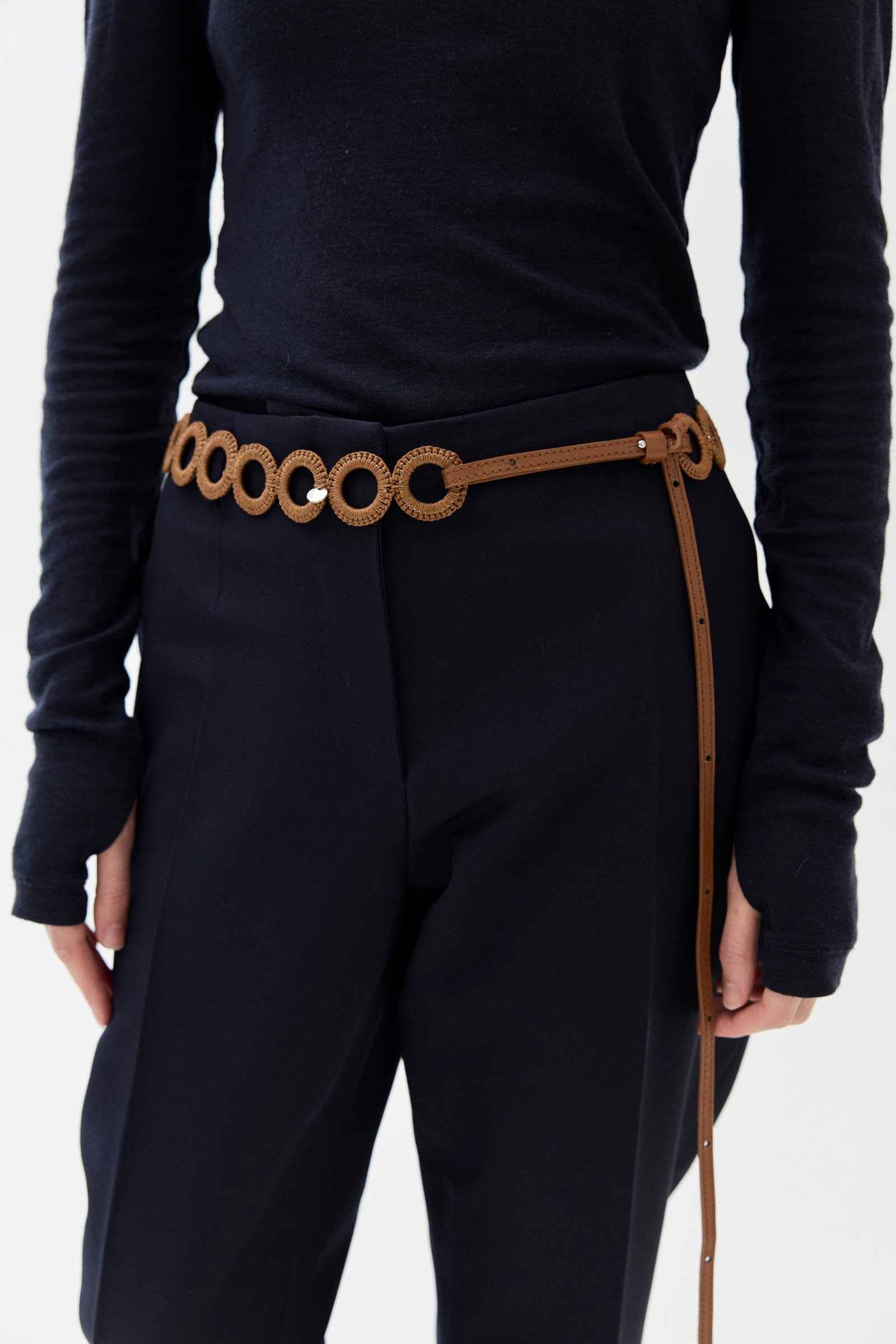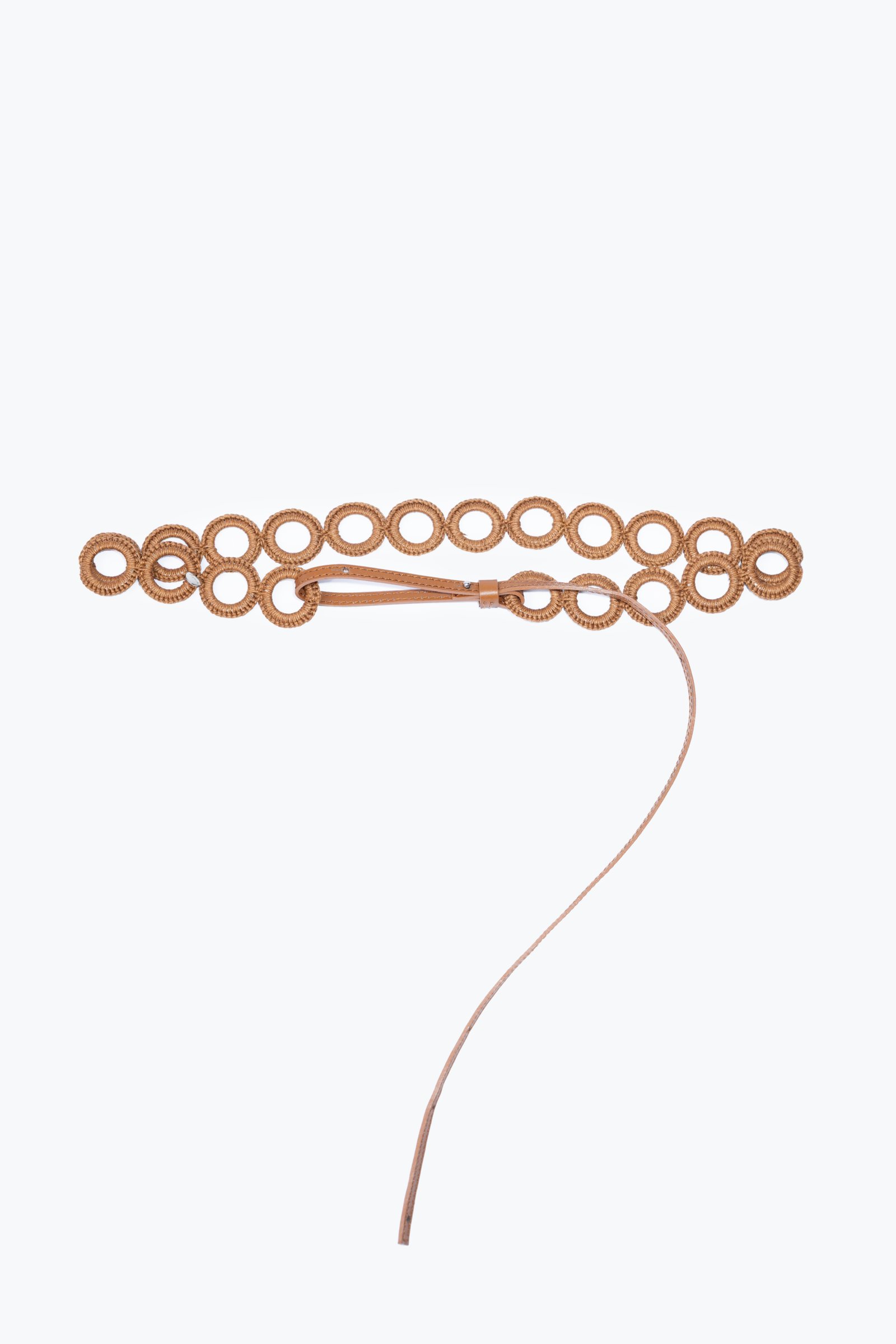 Cinturón calado tejido a mano con hilo de algodón encerado y pieza regulable de cuero vacuno.